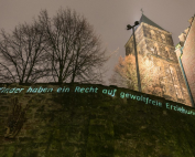 Wir sprühn´s an die Wand! Jeden Abend nach Sonnenuntergang wird die Botschaft auf die Wand am Kannegießerhaus projiziert. [...]